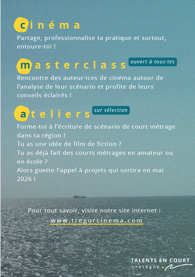 📅 Premier rendez-vous : masterclass à Brest le 13 novembre, dans le cadre du Festival européen du film court.