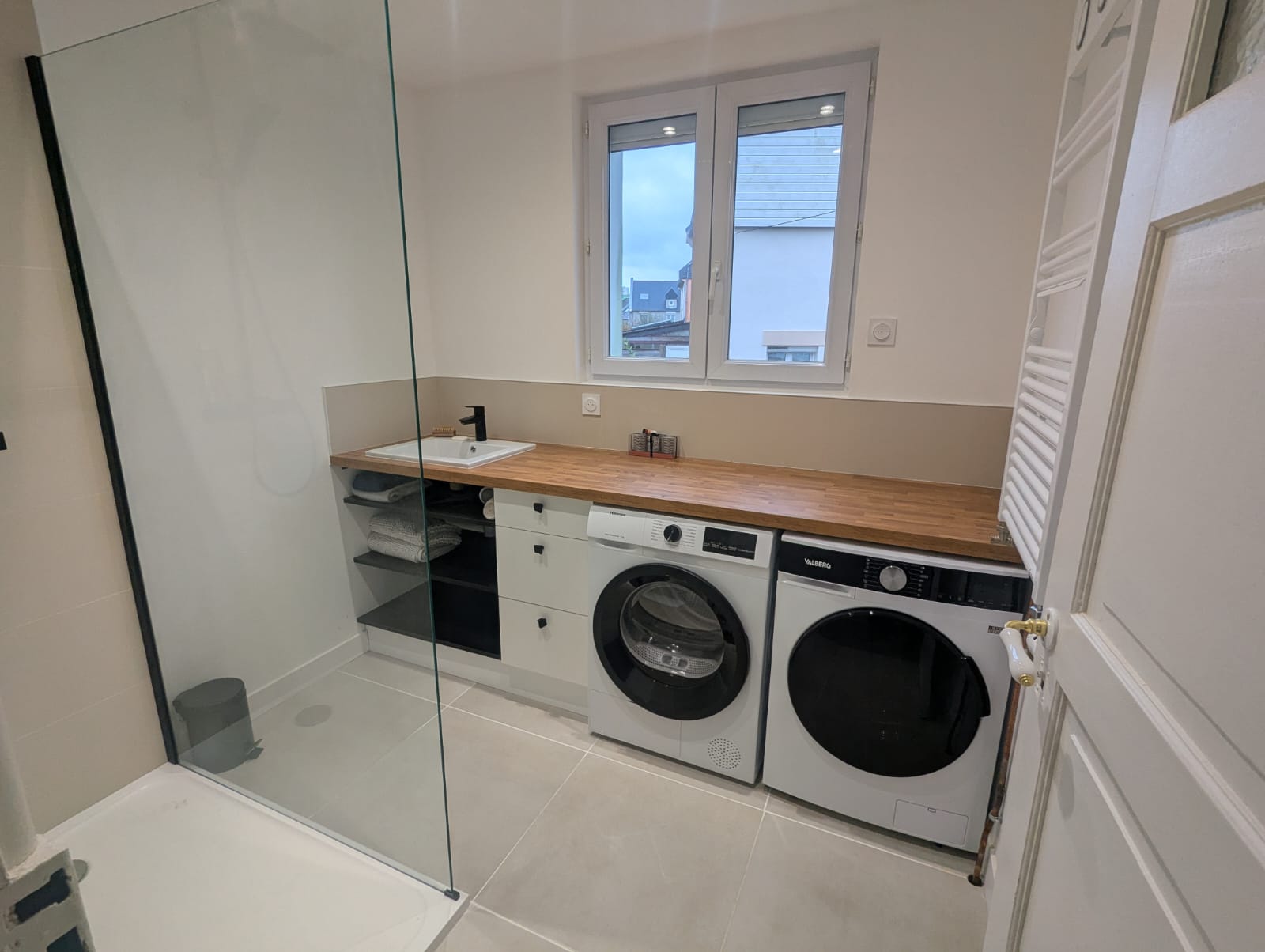Cuisine récente et équipée (plaque à induction, four, lave-vaisselle, petit électroménager, vaisselle...)