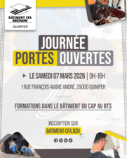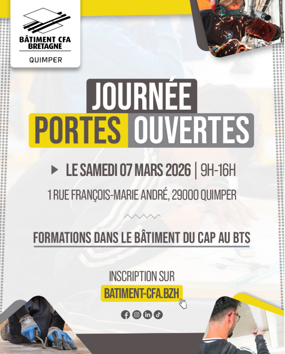 Le Bâtiment CFA Bretagne – site de Quimper vous ouvre ses portes pour une journée dédiée à la découverte des métiers et des formations.