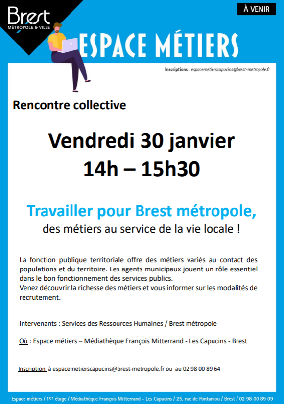 📝 Inscription : espacemeterscapucins@brest-metropole.fr ou au 02 98 00 89 64