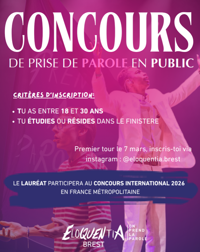 Le ou la lauréat·e du concours brestois aura l’opportunité de participer au concours international Eloquentia 2026, en France métropolitaine.