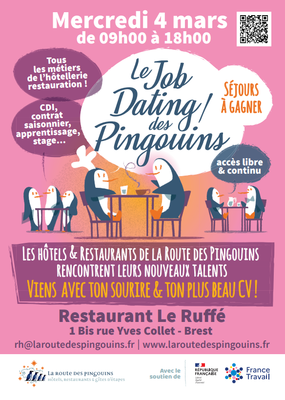 Les hôtels et restaurants de La Route des Pingouins viennent à la rencontre de leurs futurs talents. De nombreuses opportunités sont à pourvoir :