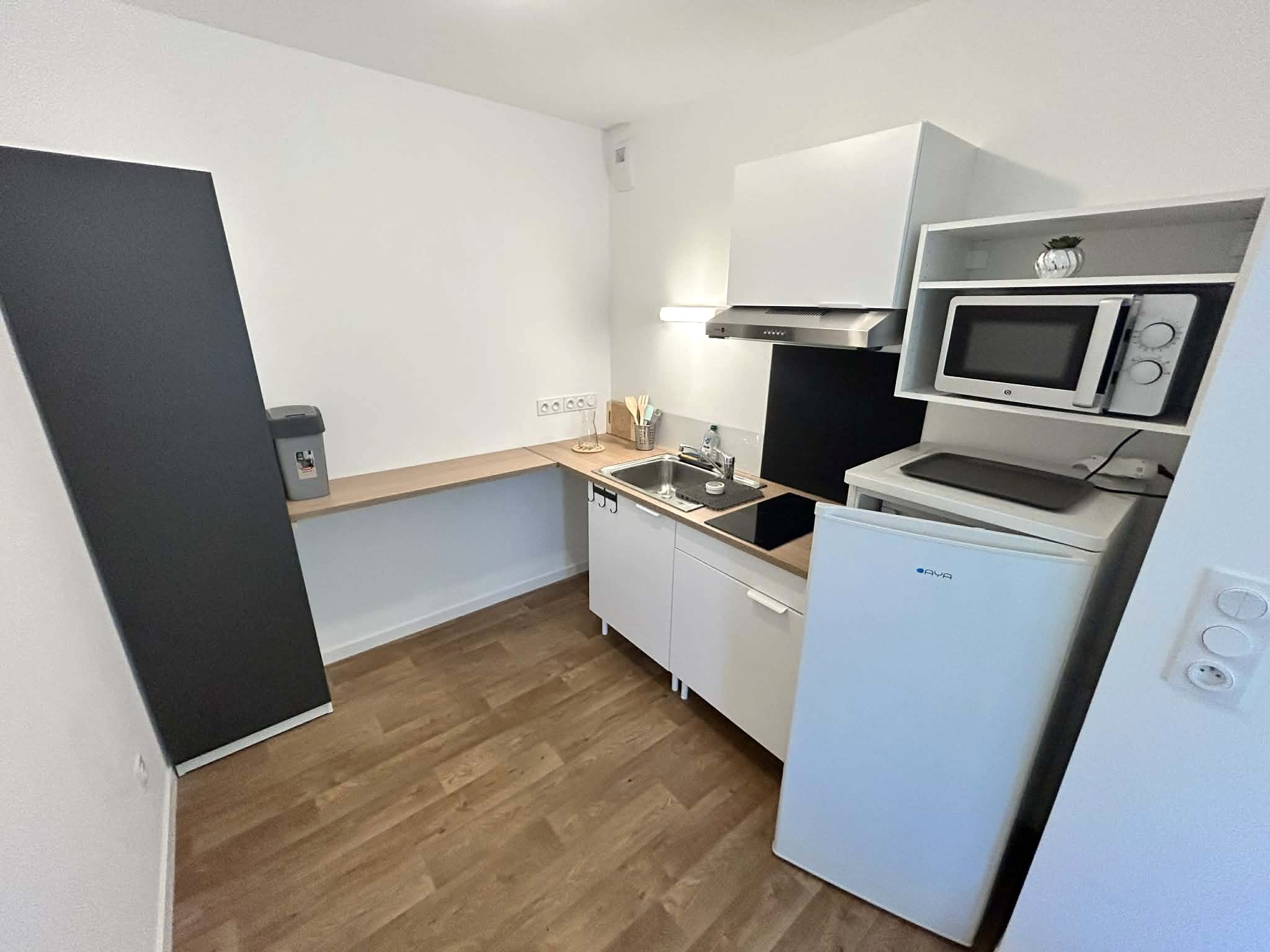 - Cuisine équipée : induction, réfrigérateur, rangements